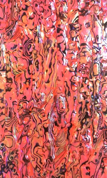Blaze Orange Paua Flex-Pearl ThinLam. Thinlam is an opaque color treatment that gives high durability, more flexibility, deep contrast, and a glossy iridescence. Simply measure, cut, boil, peel and stick for a beautiful addition to your custom rod. .008mm thickness on 3M backing.