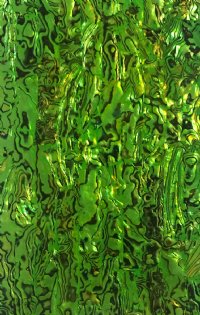 Lime Green Paua Flex-Pearl ThinLam. Thinlam is an opaque color treatment that gives high durability, more flexibility, deep contrast, and a glossy iridescence. Simply measure, cut, boil, peel and stick for a beautiful addition to your custom rod. .008mm thickness on 3M backing.