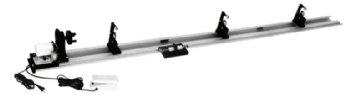 SOLID ALUMINUM BASE IN THREE SECTIONS. STANDARD CHUCK. 3 ROD STANDS WITH BALL-BEARING WHEELS FOR EASY POSITIONING ALONG BASE. ADJUSTABLE HEIGHT ROD SUPPORTS TIGHTEN INTO POSITION TO ENSURE ROD STABILITY DURING HIGH SPEEDS. DUAL-SPOOL/DUAL TENSION THREAD SUPPORT SYSTEM. CERAMIC LINE GUIDES ON THREAD CARRIER.